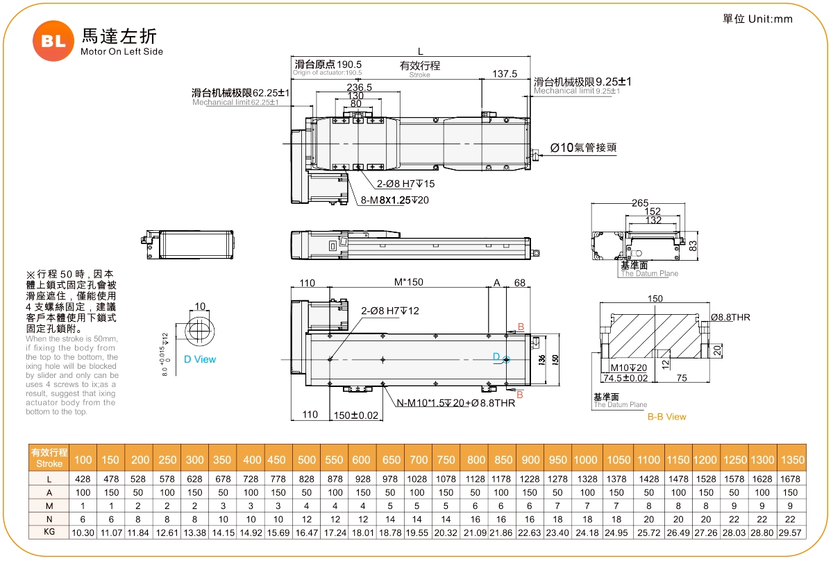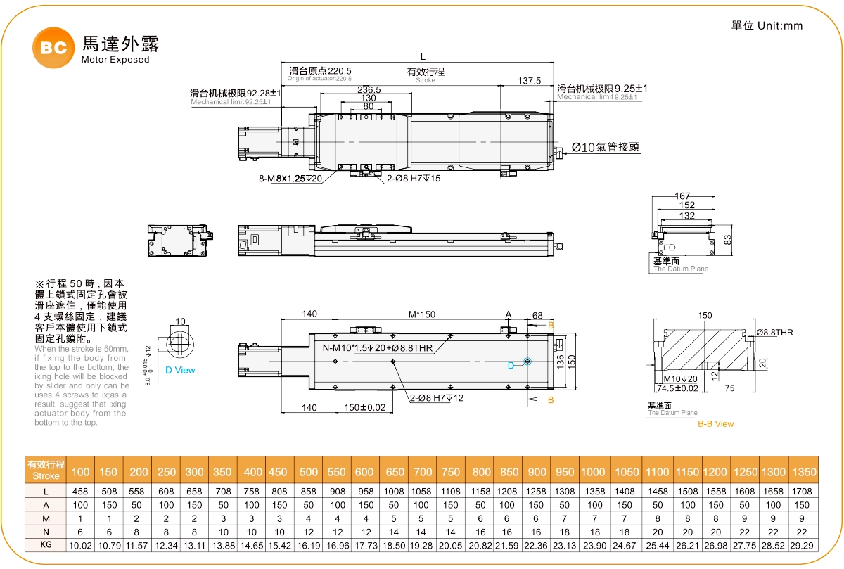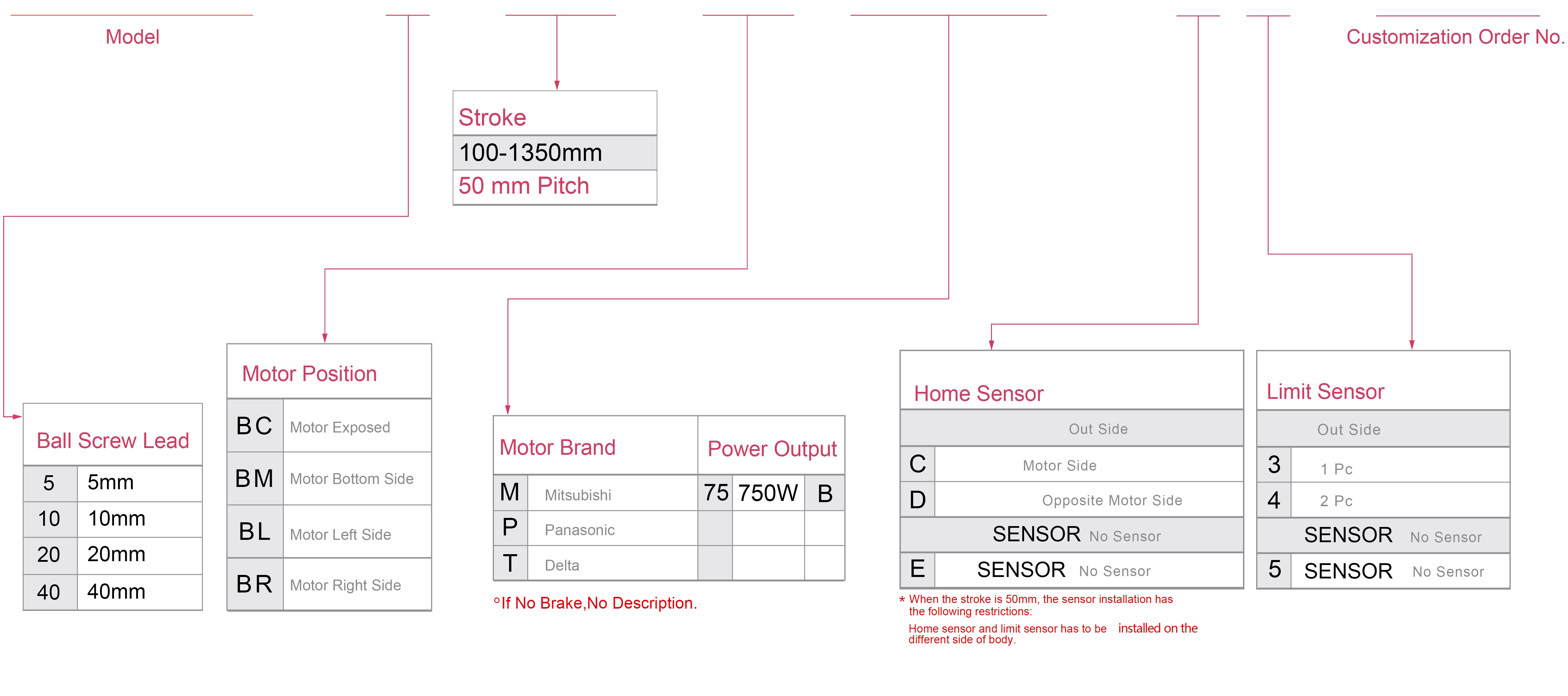 | Sử dụng ở đâu | Chế độ lái | Thông số kỹ thuật mô hình | Công suất động cơ (w) | Chiều rộng (mm) | Khả năng lặp lại (mm) | Thông số kỹ thuật vít bi | Tải trọng tối đa (kg) | Tốc độ tối đa (mm/s) *1 | ||