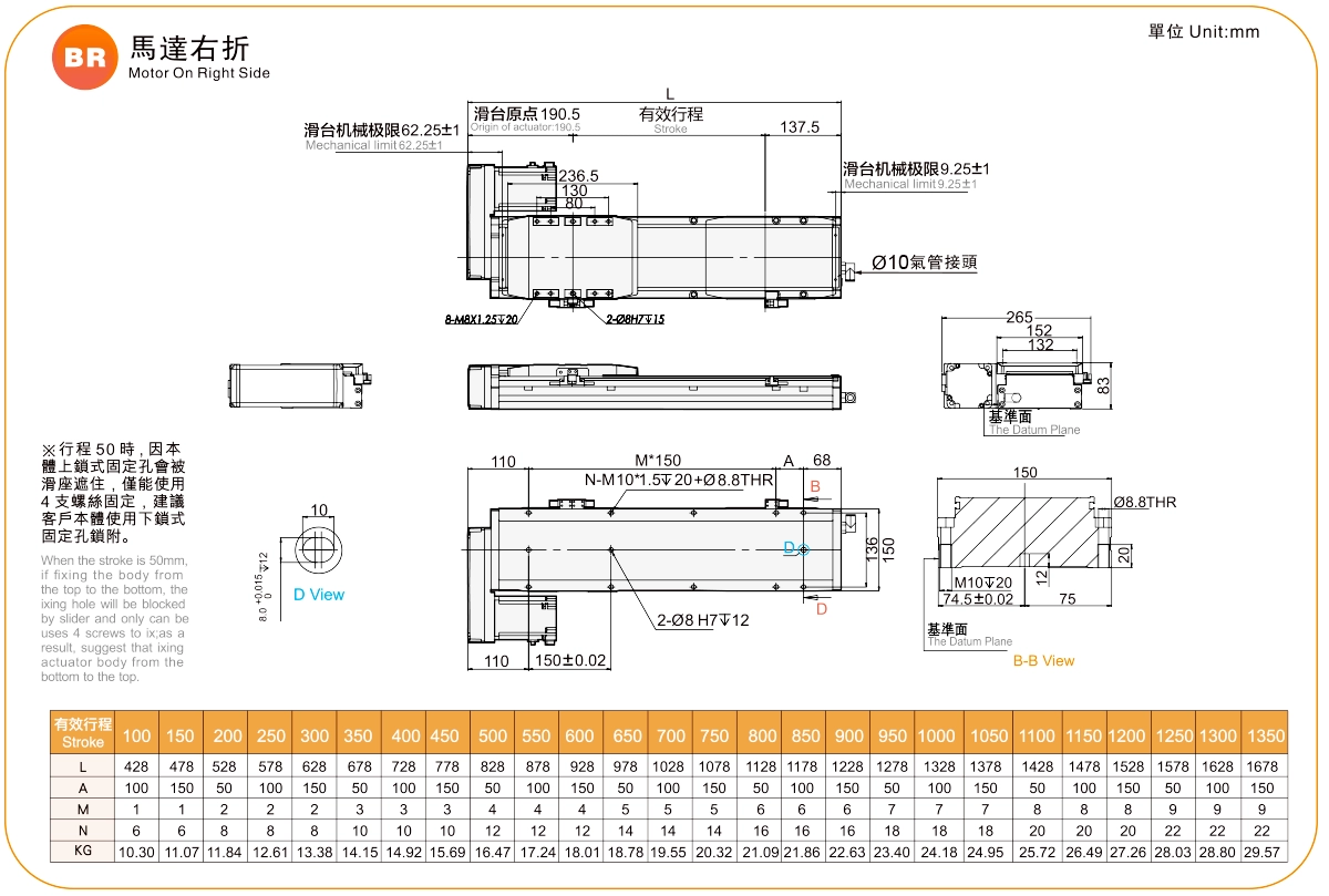 | Thông số kỹ thuật | Độ lặp lại (mm) | ±0,005/0,01 | ||||