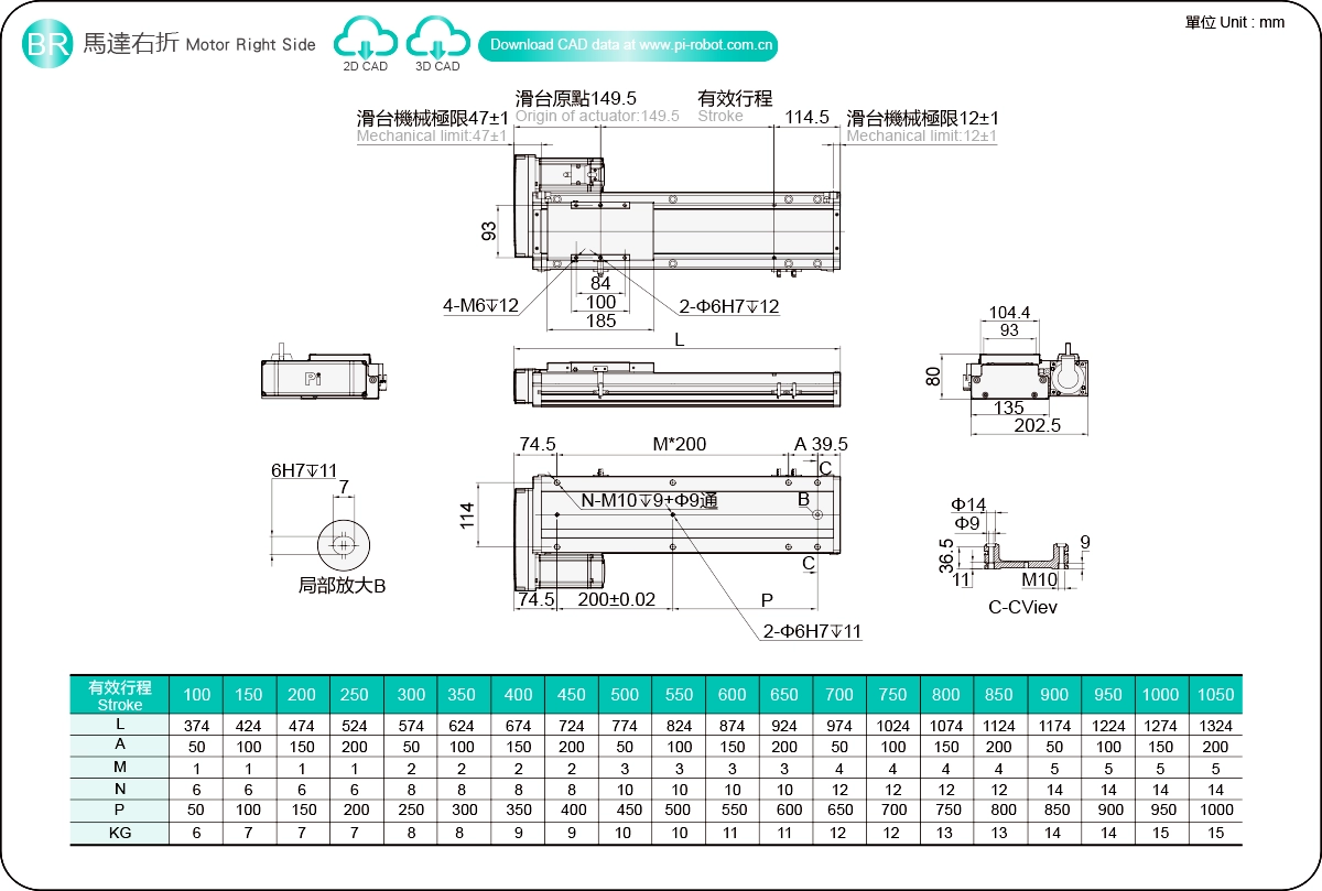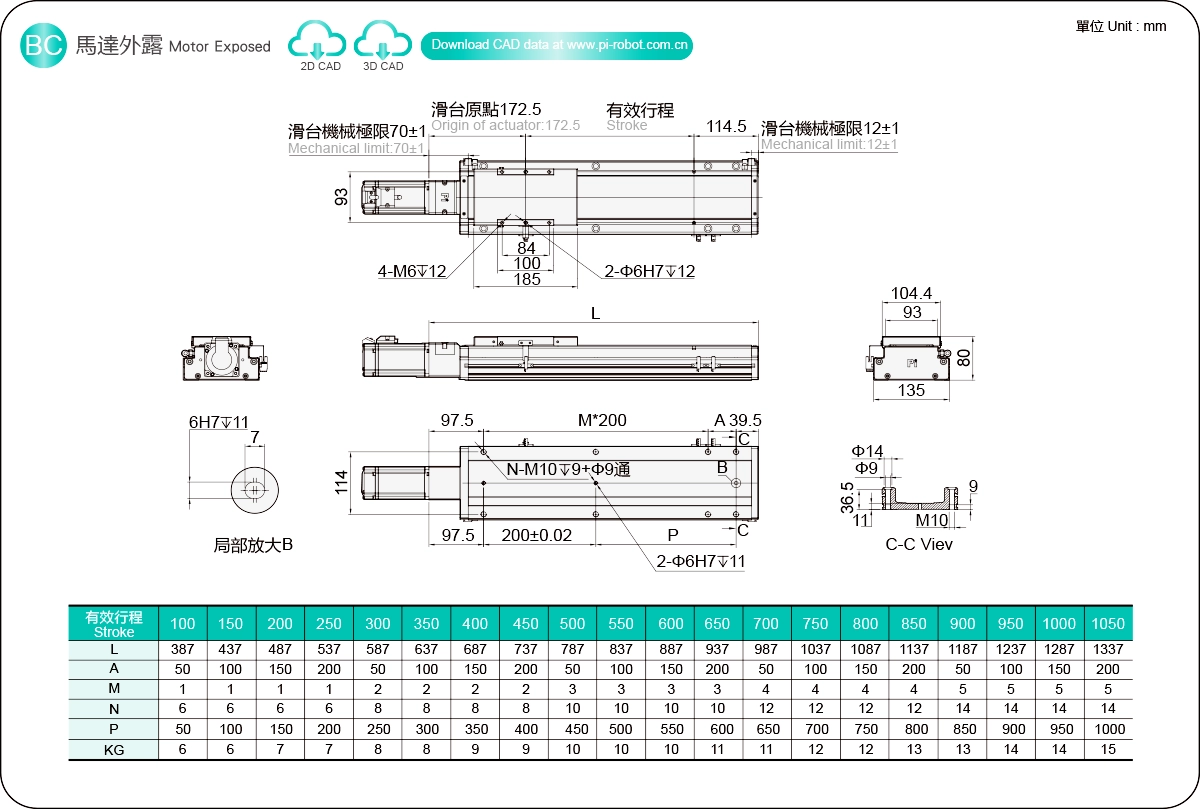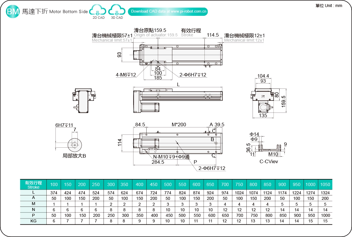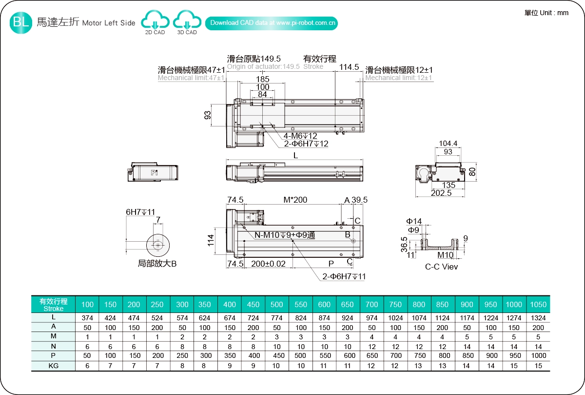| Đường kính vít me bi (mm) | C7Ø16 | |||||