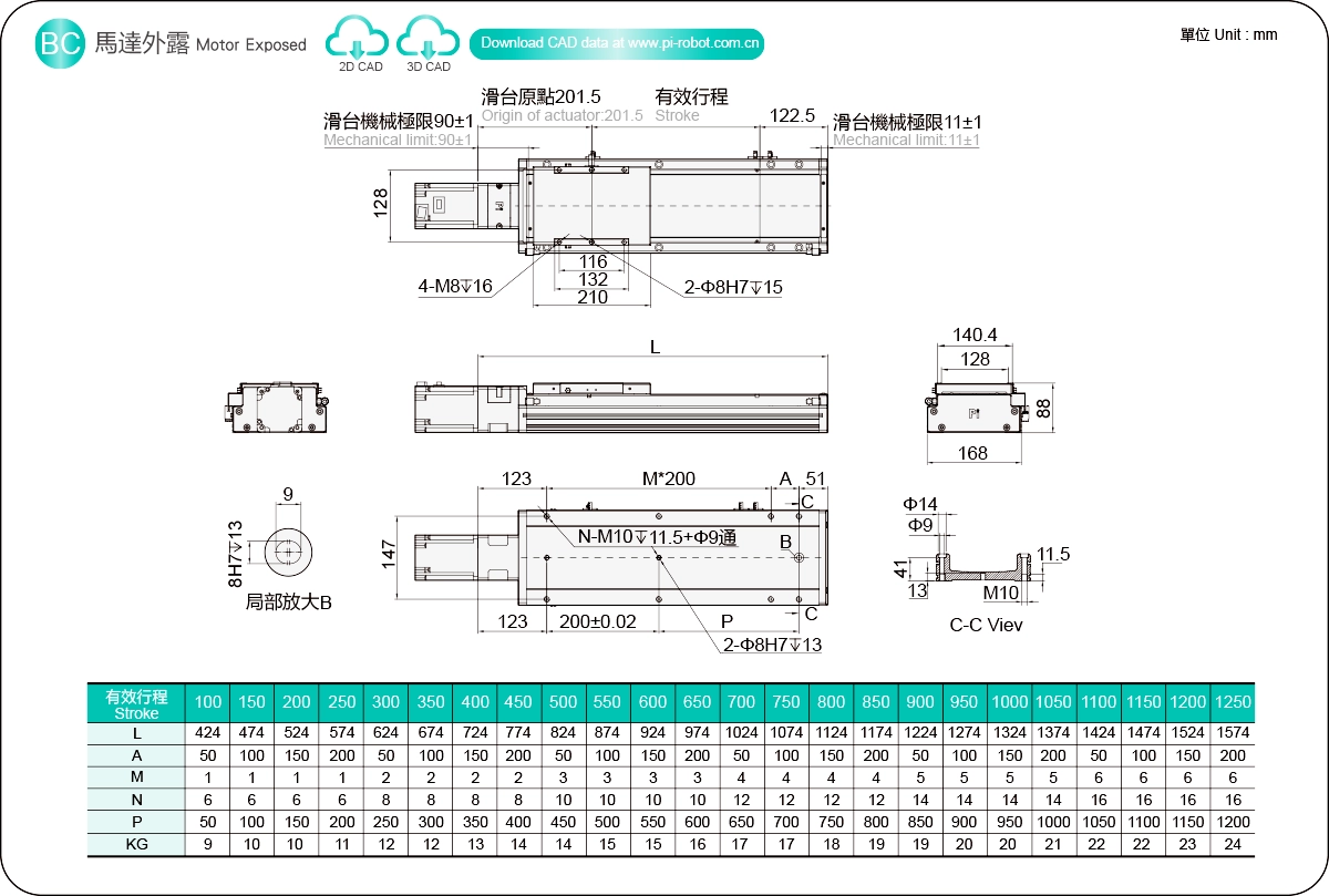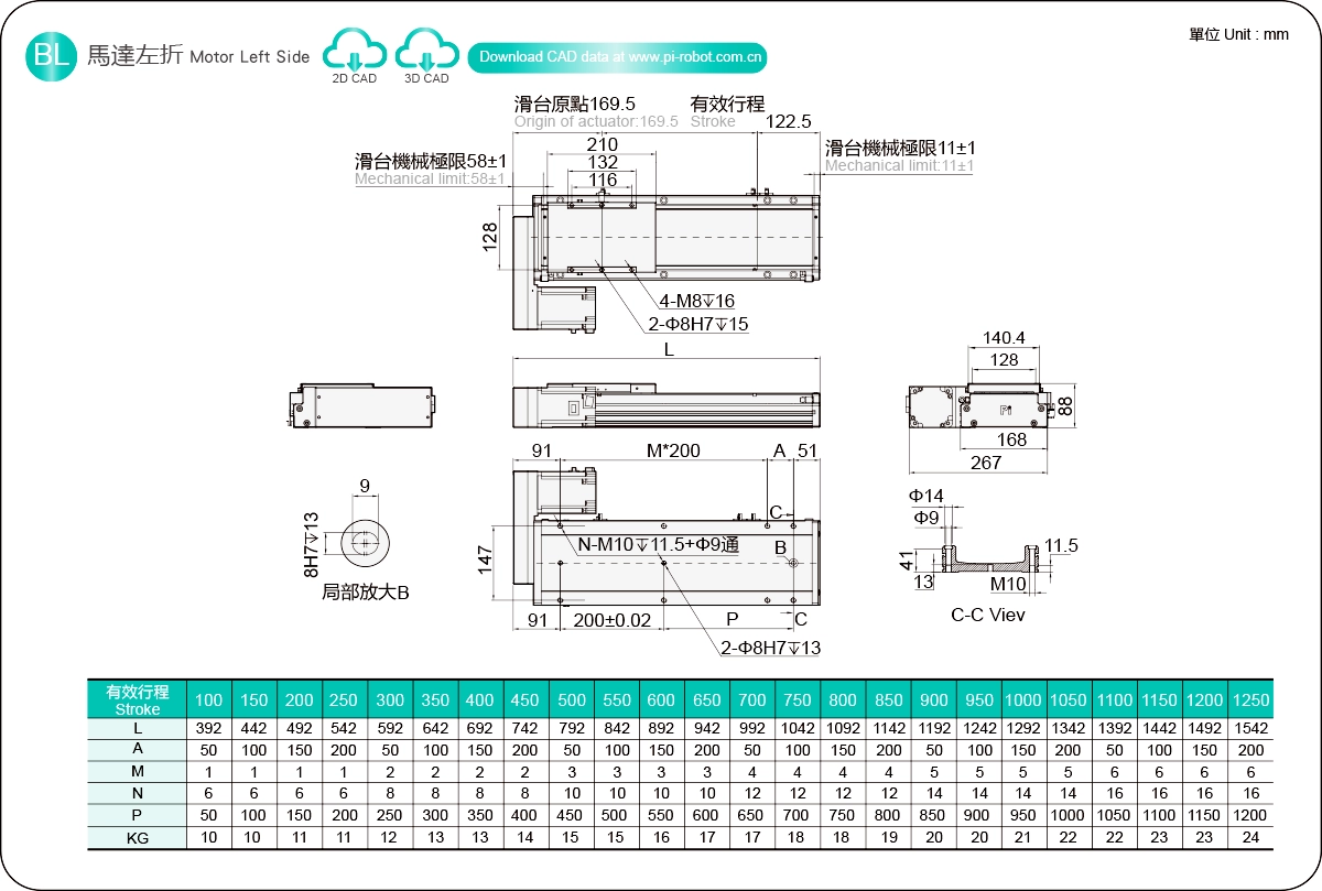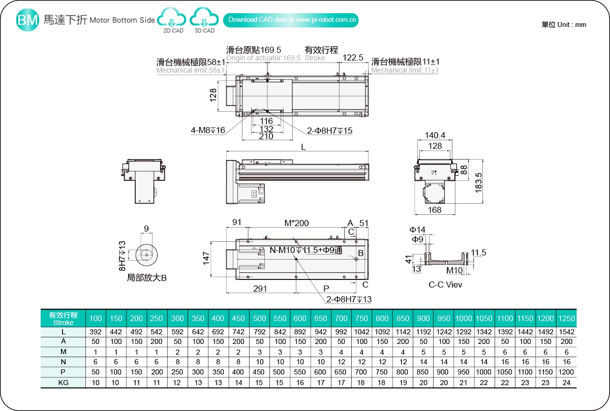 | Đường kính vít me bi (mm) | C7Ø20 | |||||