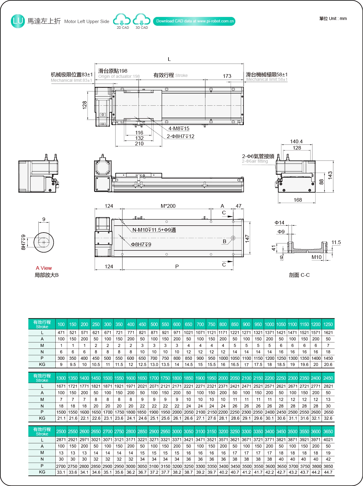 | Thanh dẫn hướng tuyến tính độ cứng cao (mm) | Bộ truyền động vít me bi | ||