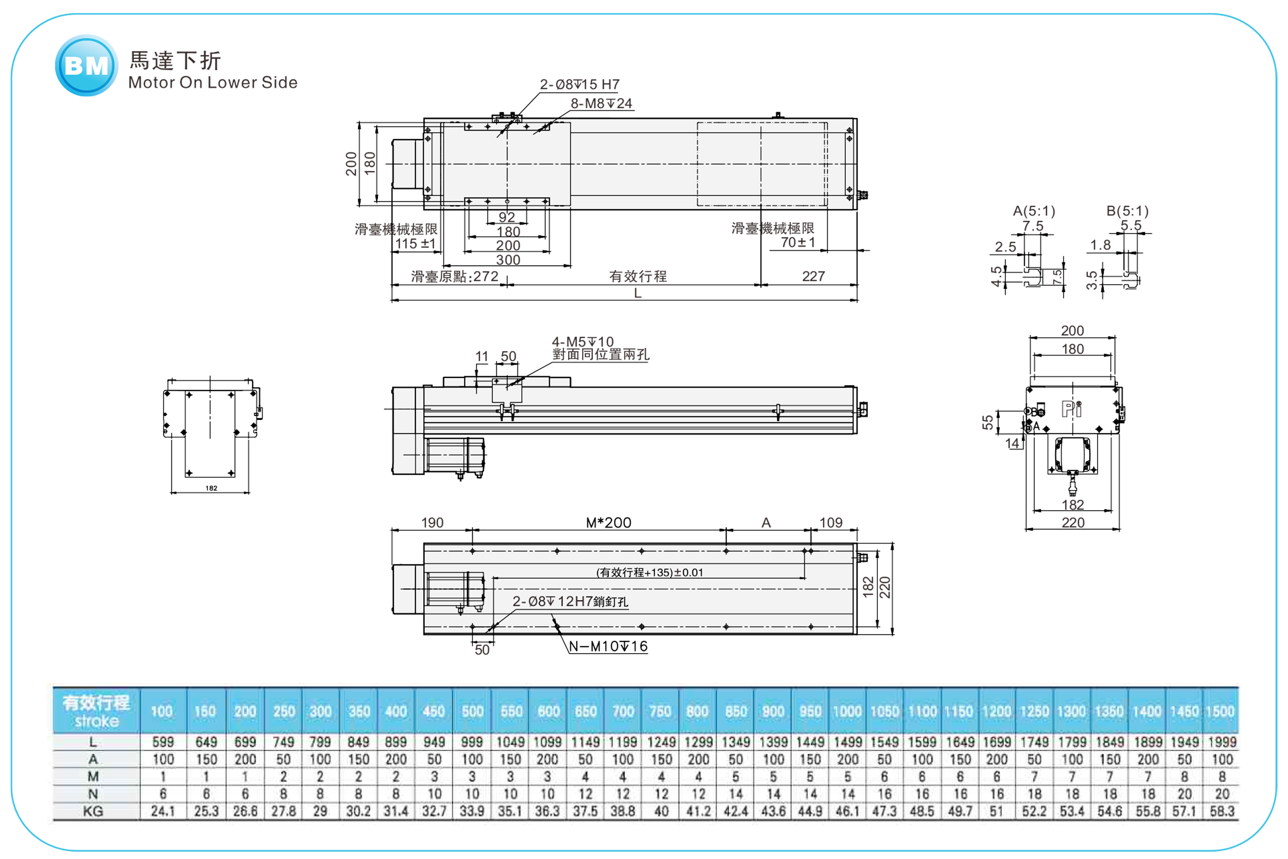 | Sử dụng ở đâu | Chế độ lái | Thông số kỹ thuật mô hình | Công suất động cơ (w) | Chiều rộng (mm) | Khả năng lặp lại (mm) | Thông số kỹ thuật vít bi | Tải trọng tối đa (kg) | Tốc độ tối đa (mm/s) *1 | ||