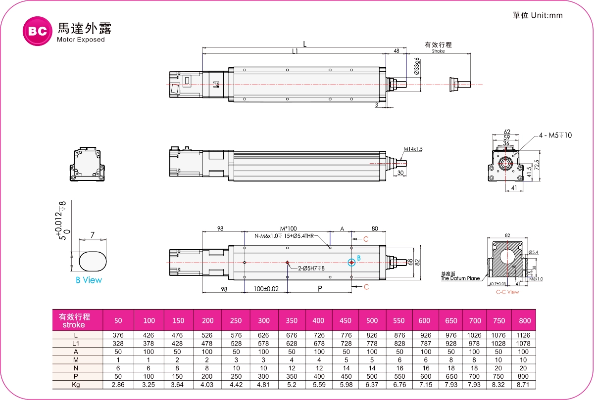 Phạm vi di chuyển: 50-800mm