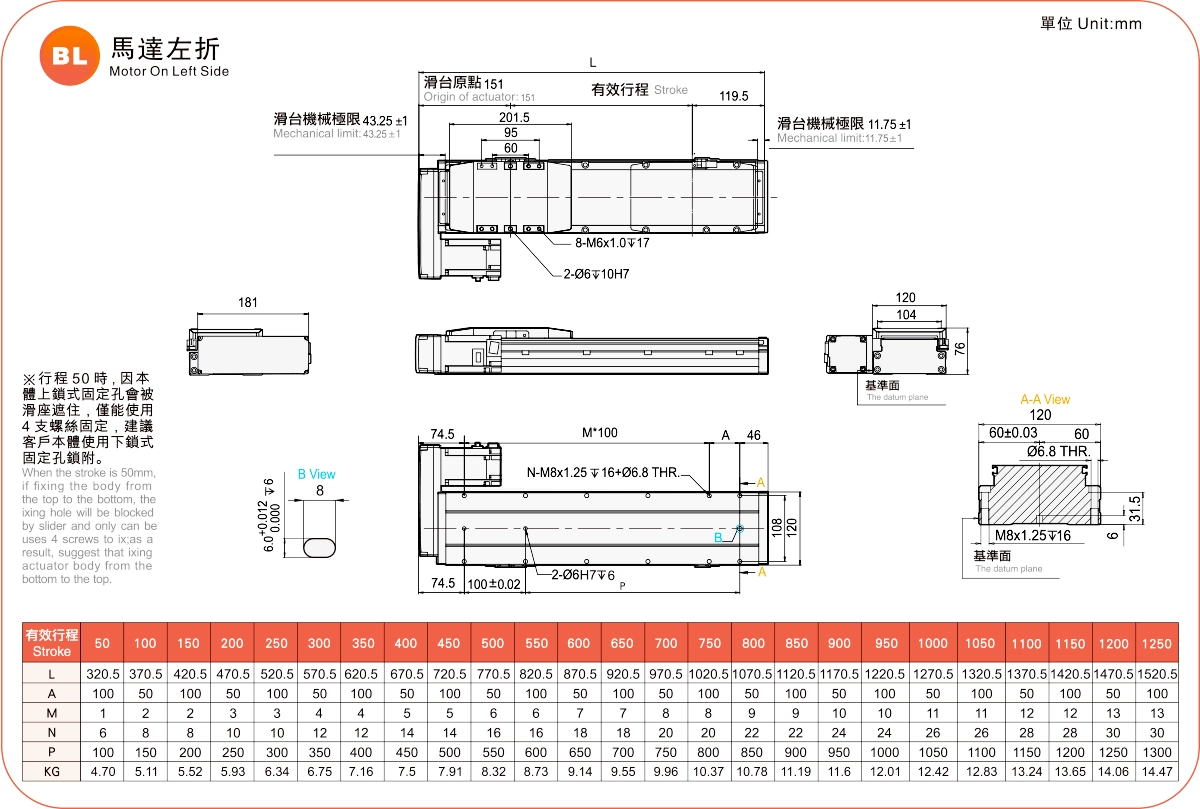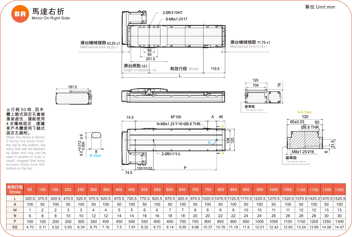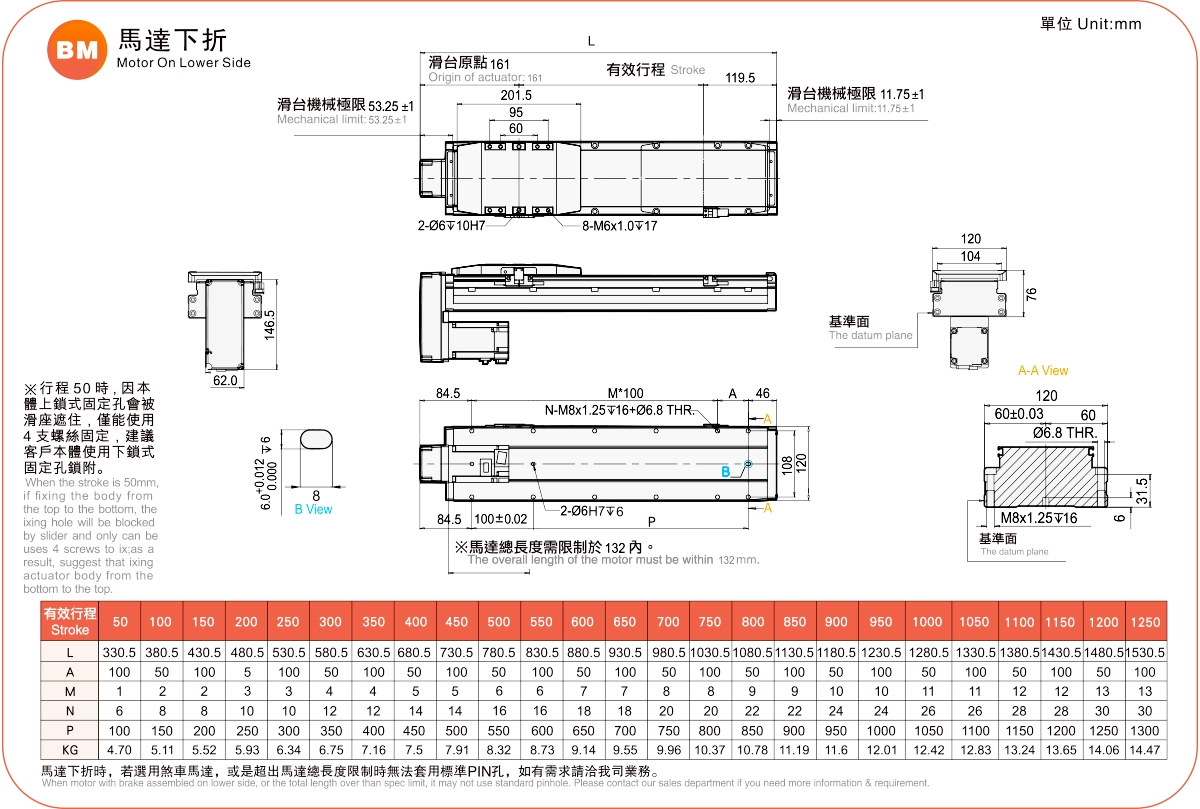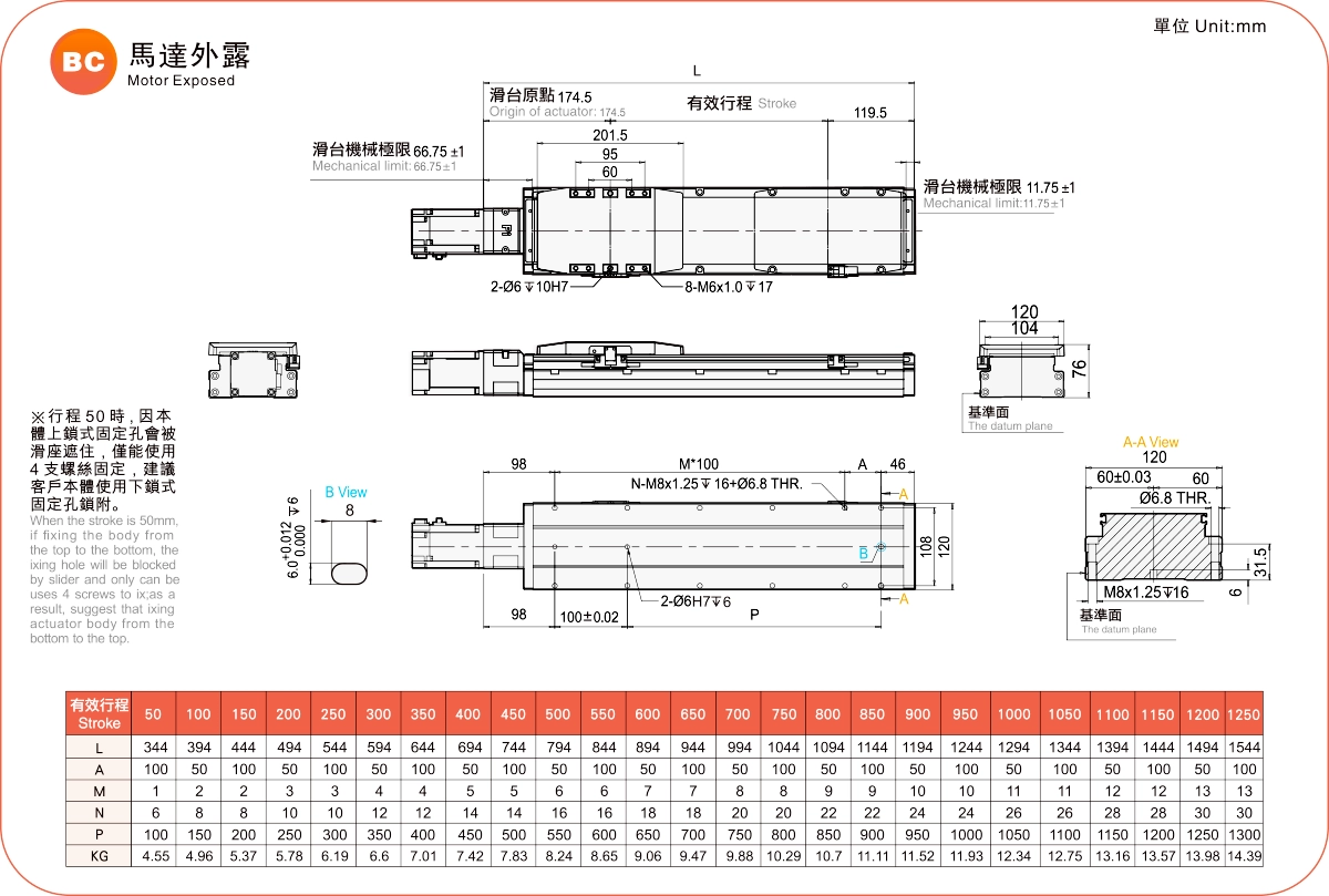 | Bước ren (mm) ※2 | Khoảng cách giữa các lỗ vít là 50-1250mm/Bước răng 50mm. | |||||