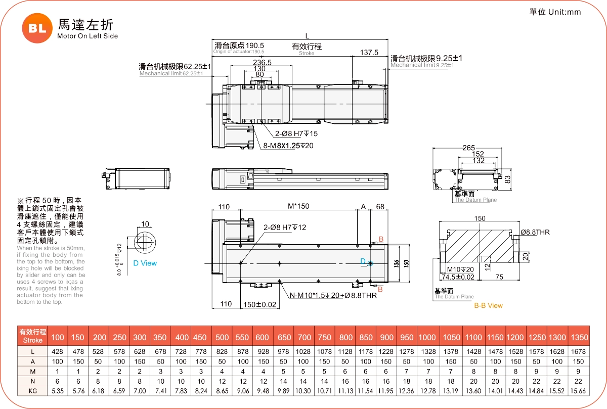 Vị trí hiện tại:Trang Chủ > Sản phẩm > Bộ truyền động vít me bi tiêu chuẩn > Dòng GRH > GRH15 > Động cơ bên trái