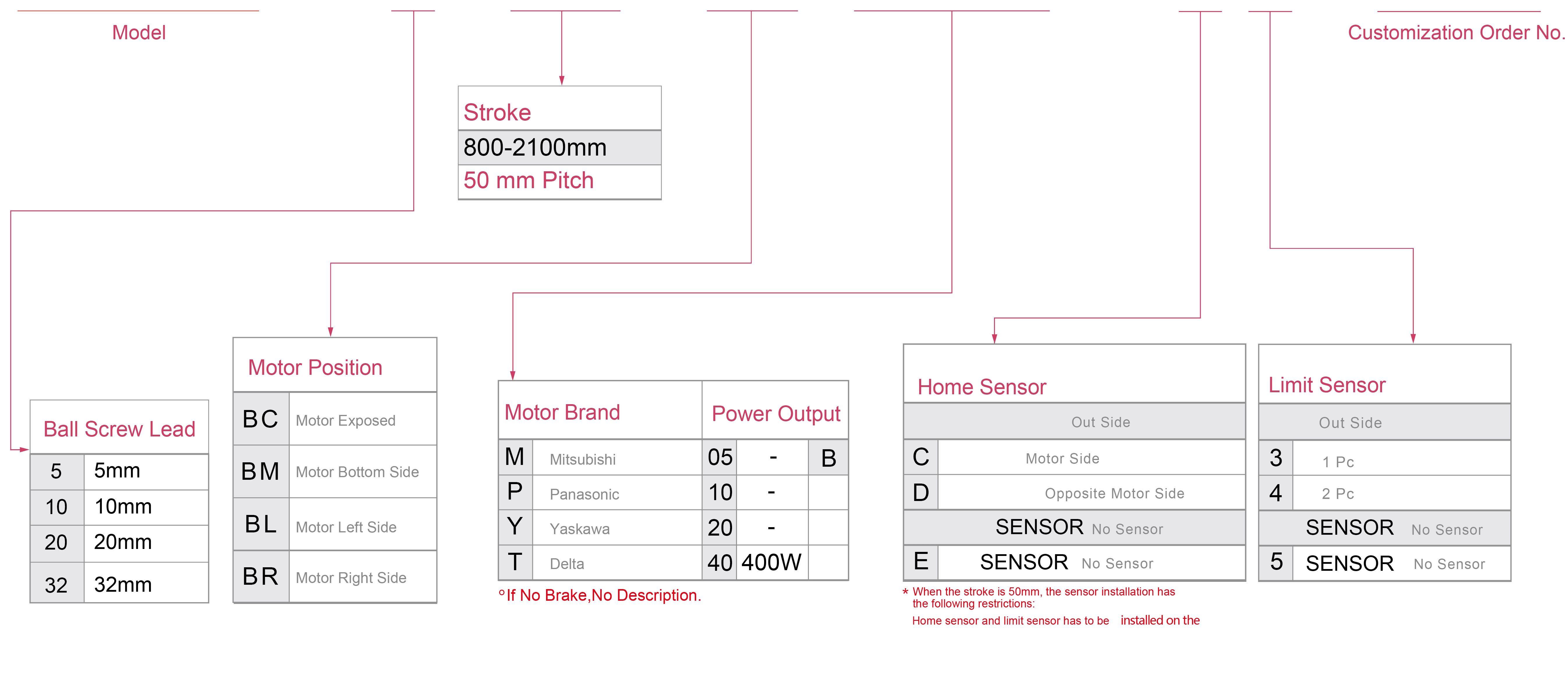 | Sử dụng ở đâu | Chế độ lái | Thông số kỹ thuật mô hình | Công suất động cơ (w) | Chiều rộng (mm) | Chiều cao của cơ thể (mm) | Khả năng lặp lại (mm) | Thông số kỹ thuật vít bi | Tải trọng tối đa (kg) | Tốc độ tối đa (mm/s) *1 | ||||||||||