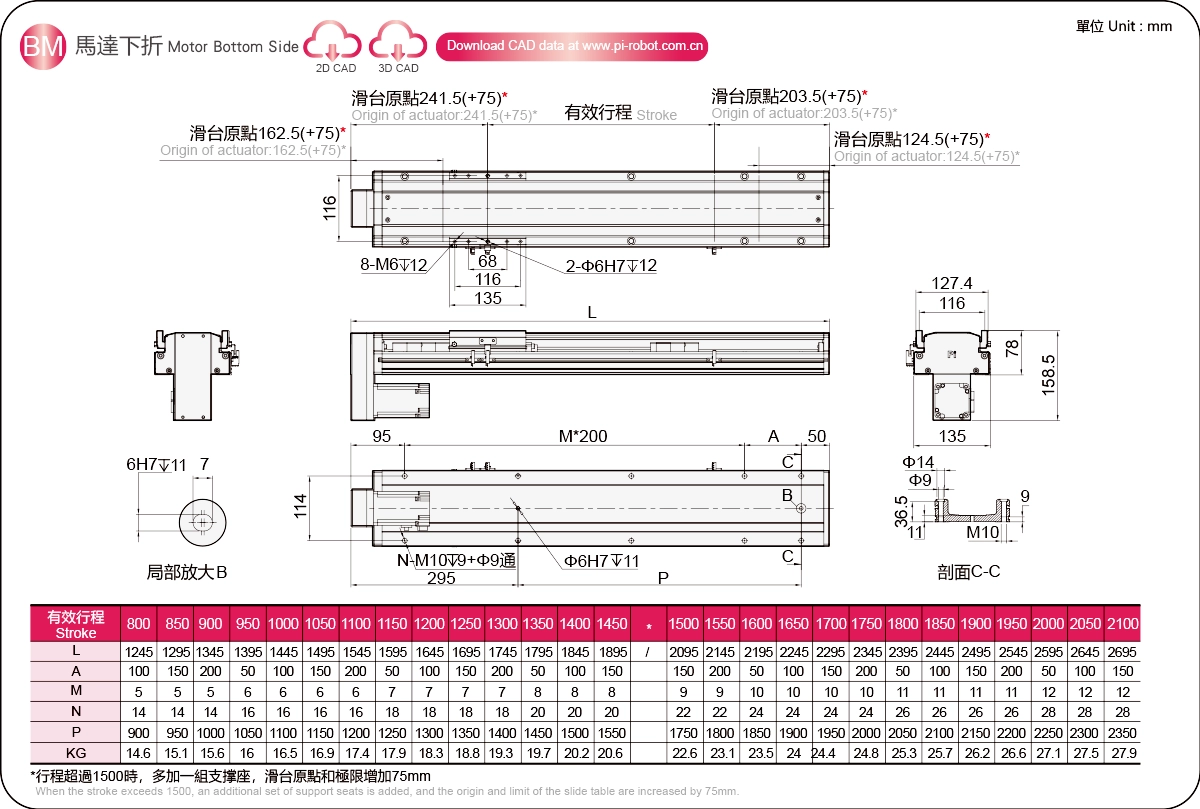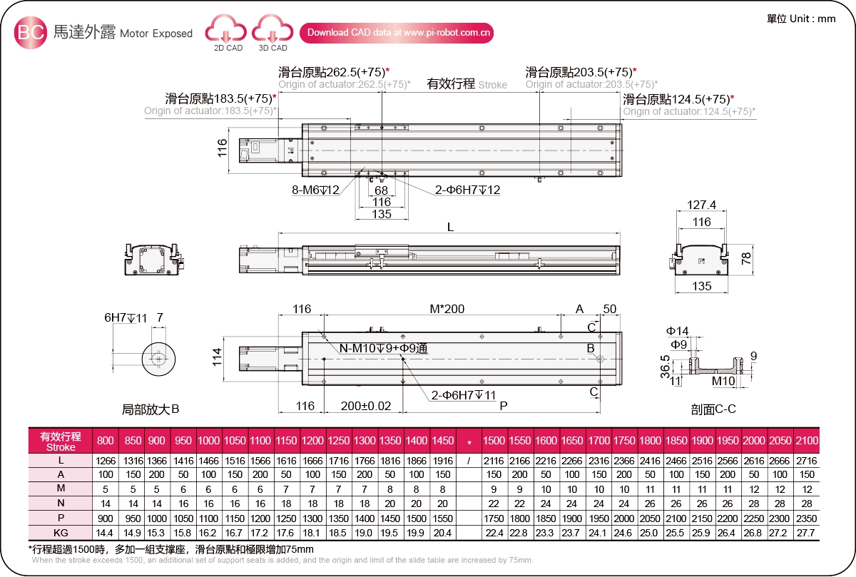 | Bước ren (mm) ※2 | Khoảng cách giữa các lỗ vít là 800-2100mm/50mm. | |||||