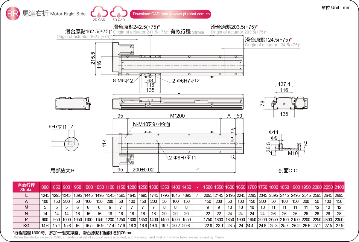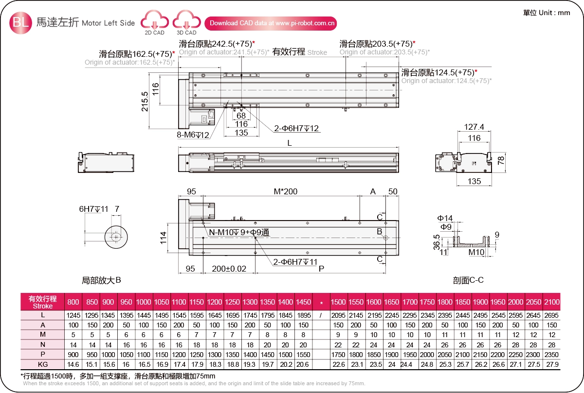 | Đường kính vít me bi (mm) | C7Ø16 | |||||