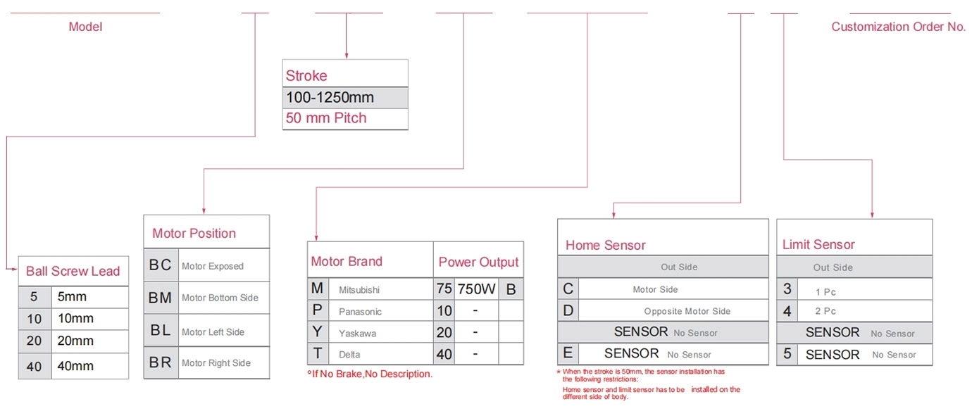 | Sử dụng ở đâu | Chế độ lái | Thông số kỹ thuật mô hình | Công suất động cơ (w) | Chiều rộng (mm) | Chiều cao của cơ thể (mm) | Khả năng lặp lại (mm) | Thông số kỹ thuật vít bi | Tải trọng tối đa (kg) | Tốc độ tối đa (mm/s) *1 | ||||||||||