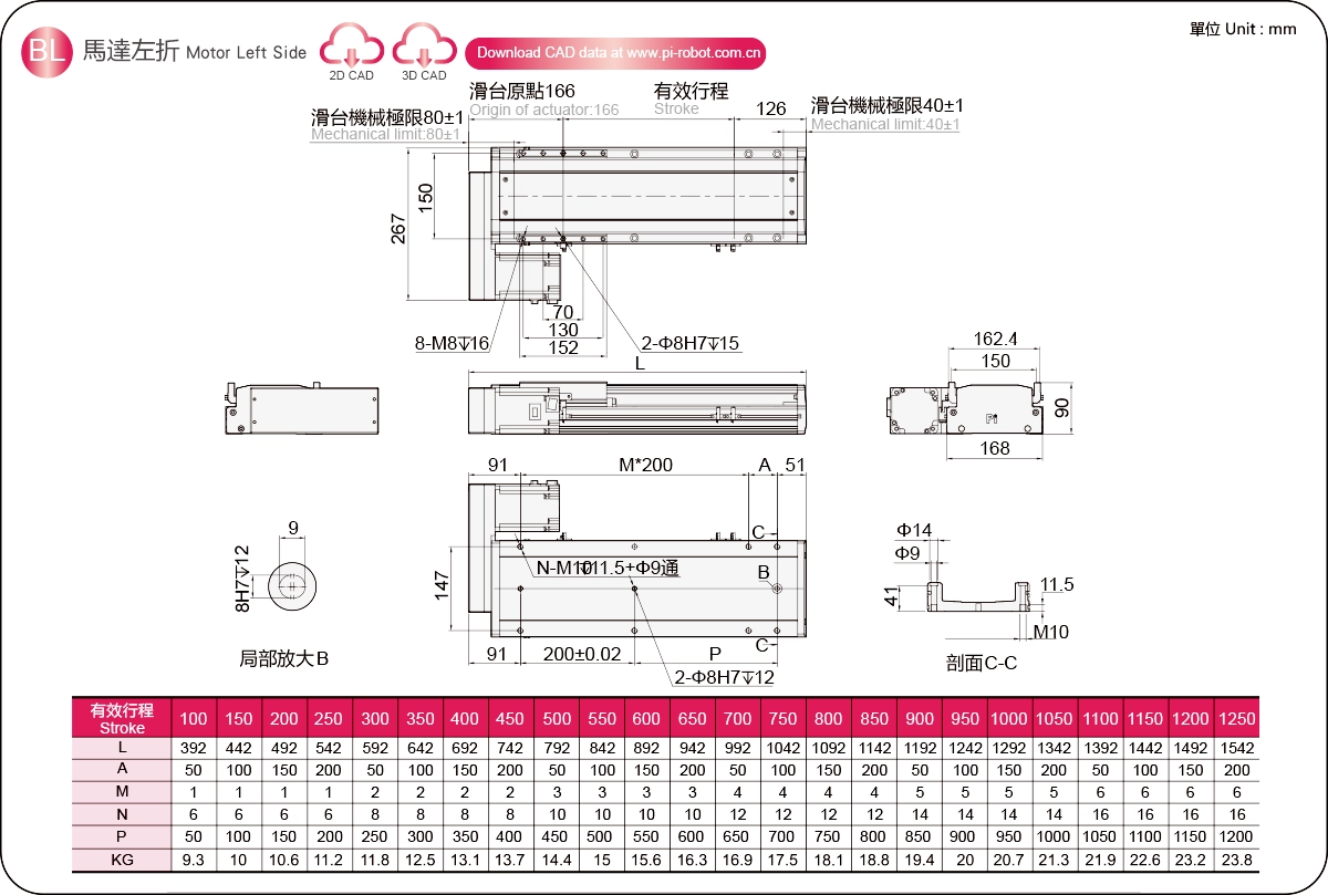 | Đường kính vít me bi (mm) | C7Ø20 | |||||