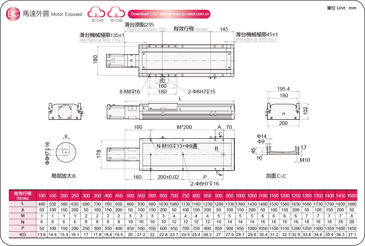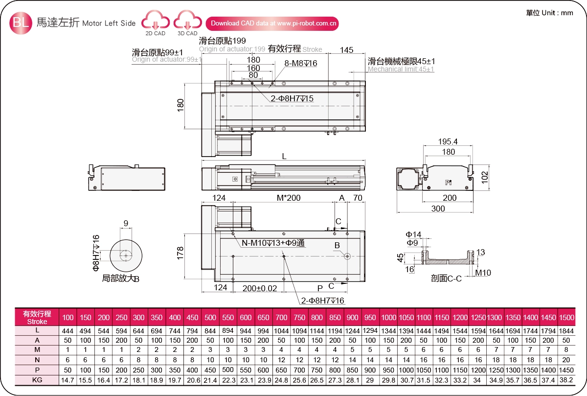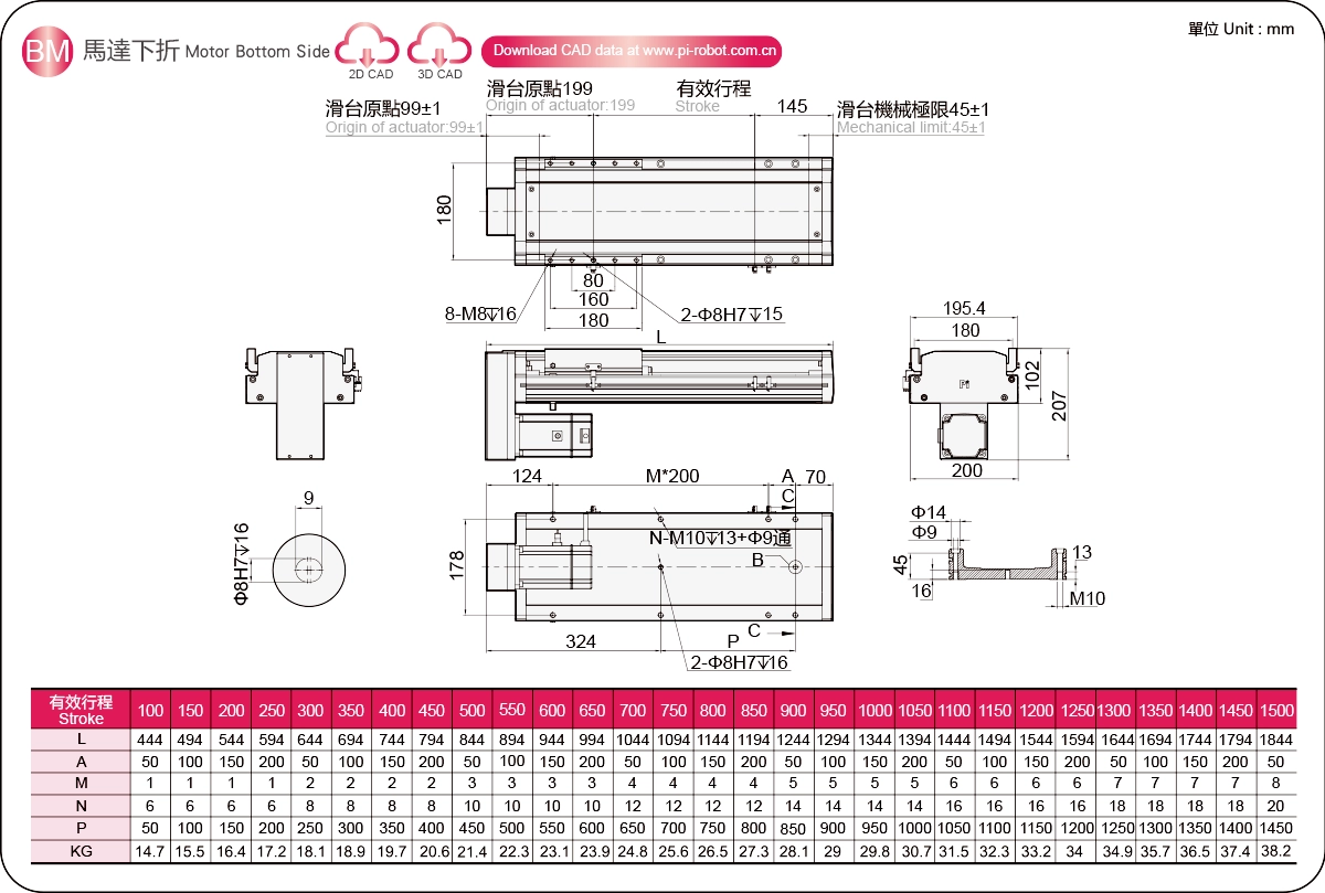 | Bước ren (mm) ※2 | Khoảng cách giữa các lỗ vít là 100-1500mm/50mm. | |||||