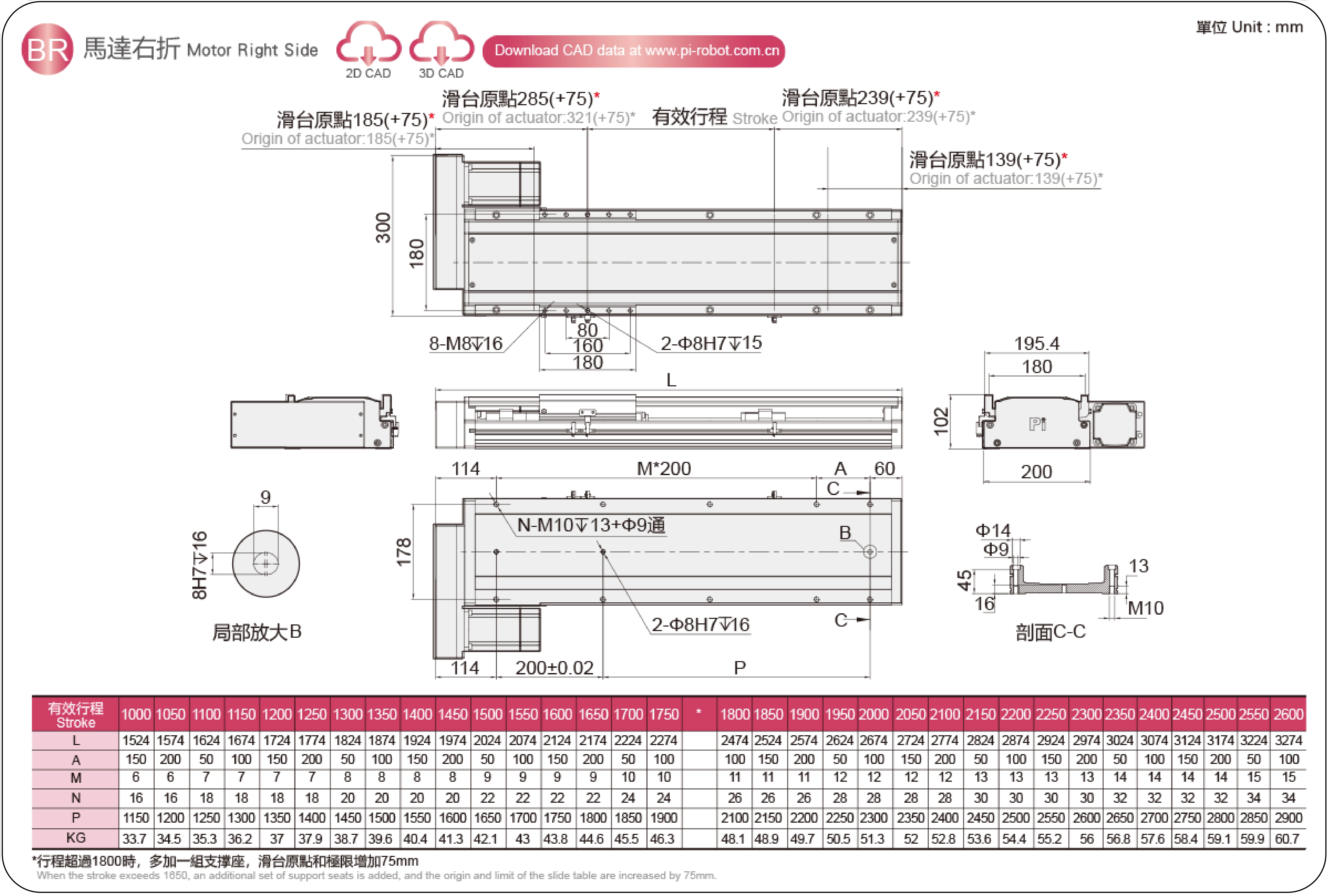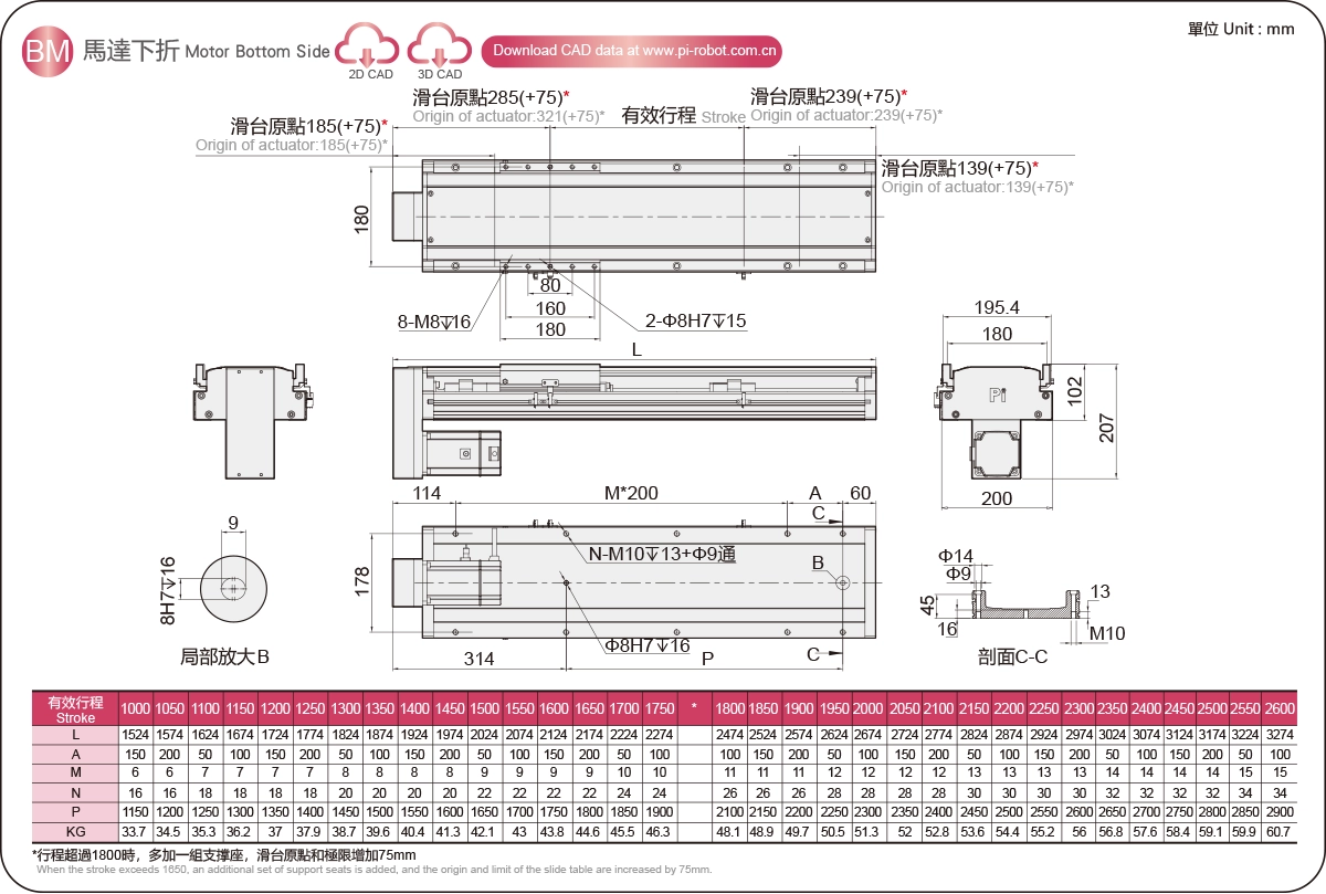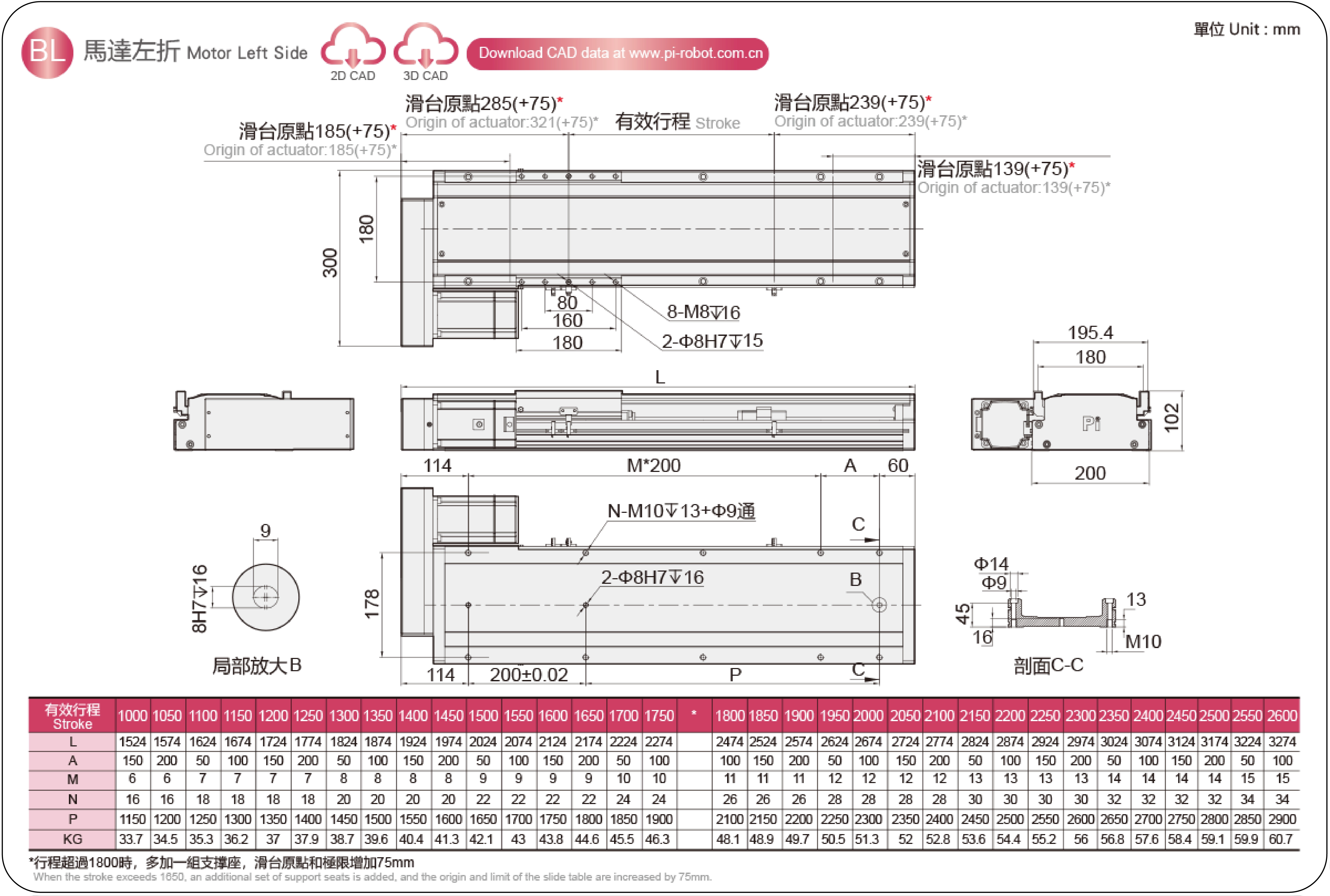 | Bước ren (mm) ※2 | Khoảng cách giữa các lỗ vít là 100-1500mm/50mm. | |||||