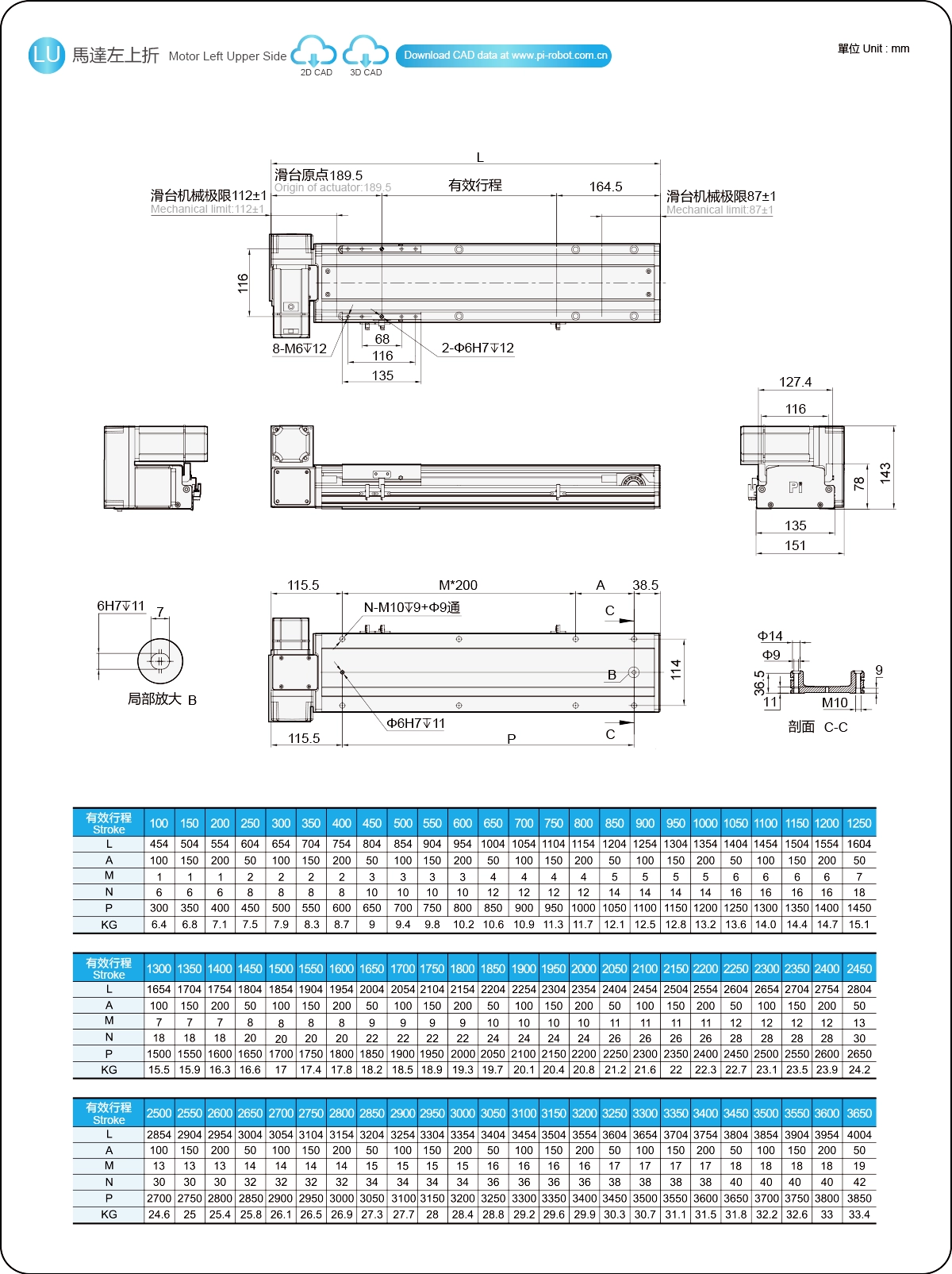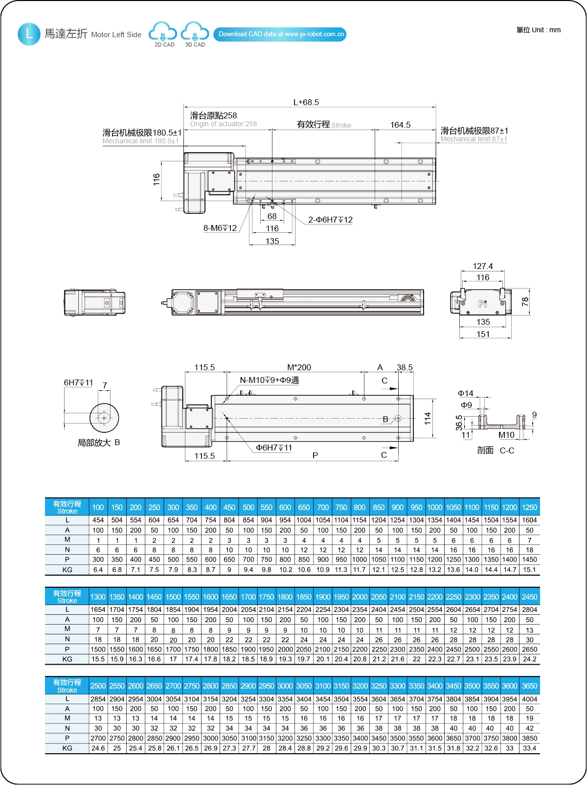| Thanh dẫn hướng tuyến tính độ cứng cao (mm) | Bộ truyền động vít me bi | ||