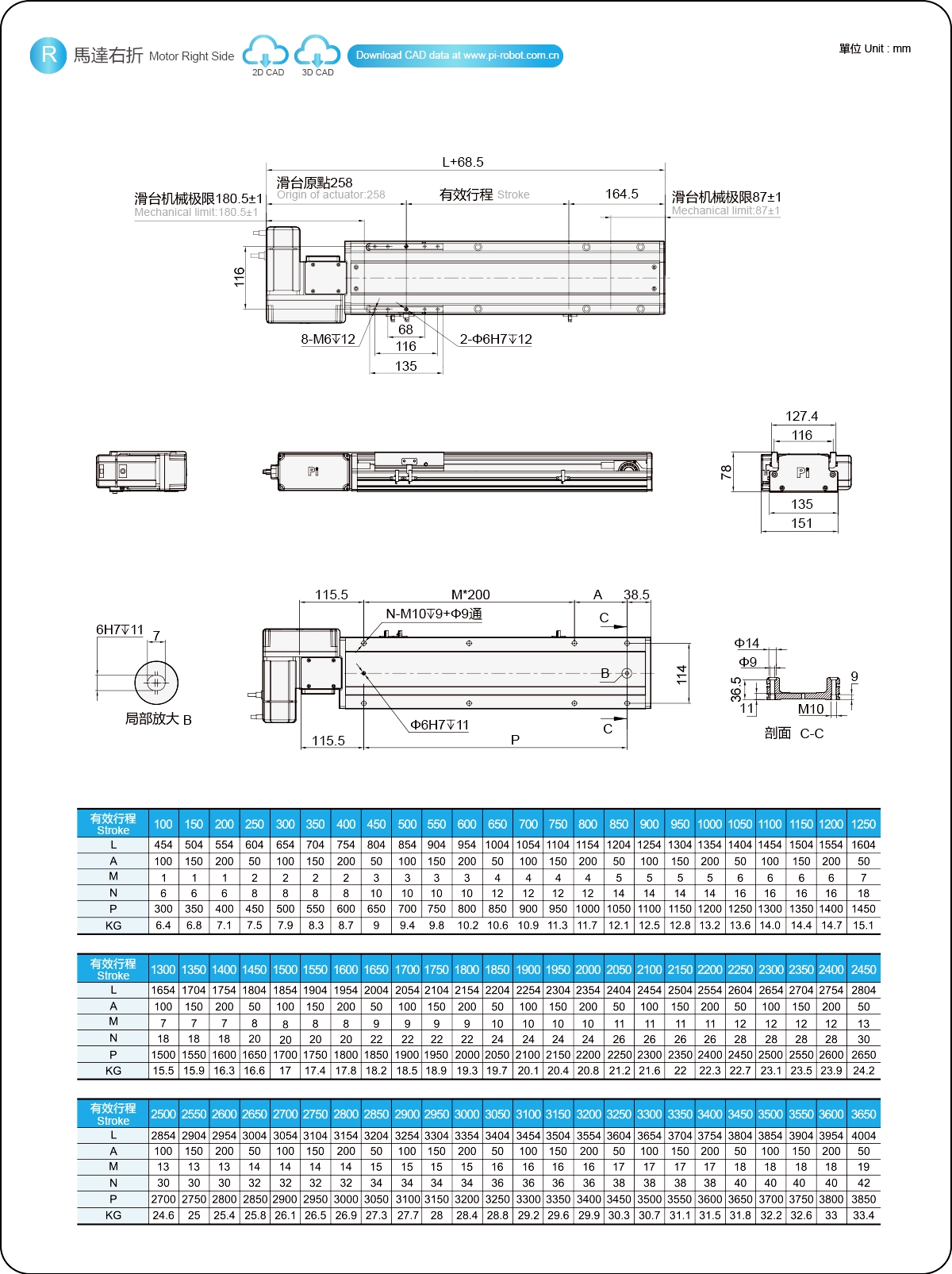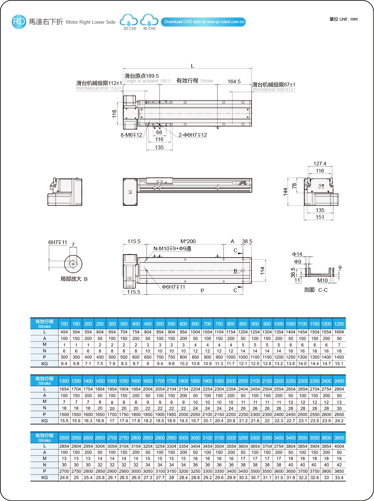 | Sử dụng ở đâu | Chế độ lái | Thông số kỹ thuật mô hình | Cơ chế giảm | Công suất động cơ (w) | Chiều rộng (mm) | Chiều cao của thân (mm) | Khả năng lặp lại (mm) | Thông số đai | Tải trọng tối đa (kg) | Tốc độ tối đa (mm/s) *1 | ||