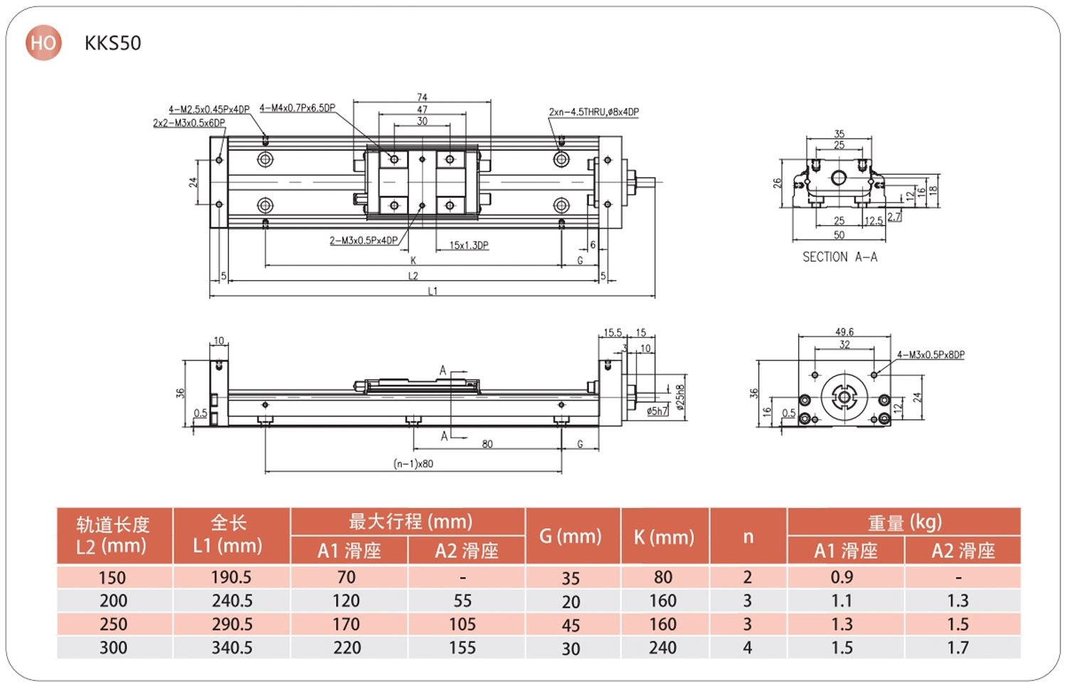 | Người mẫu | Chiều dài đường ray | Khả năng tái tạo định vị | Độ chính xác định vị | Sự song song khi đi bộ | Mômen xoắn khởi động tối đa (N-cm) | ||||