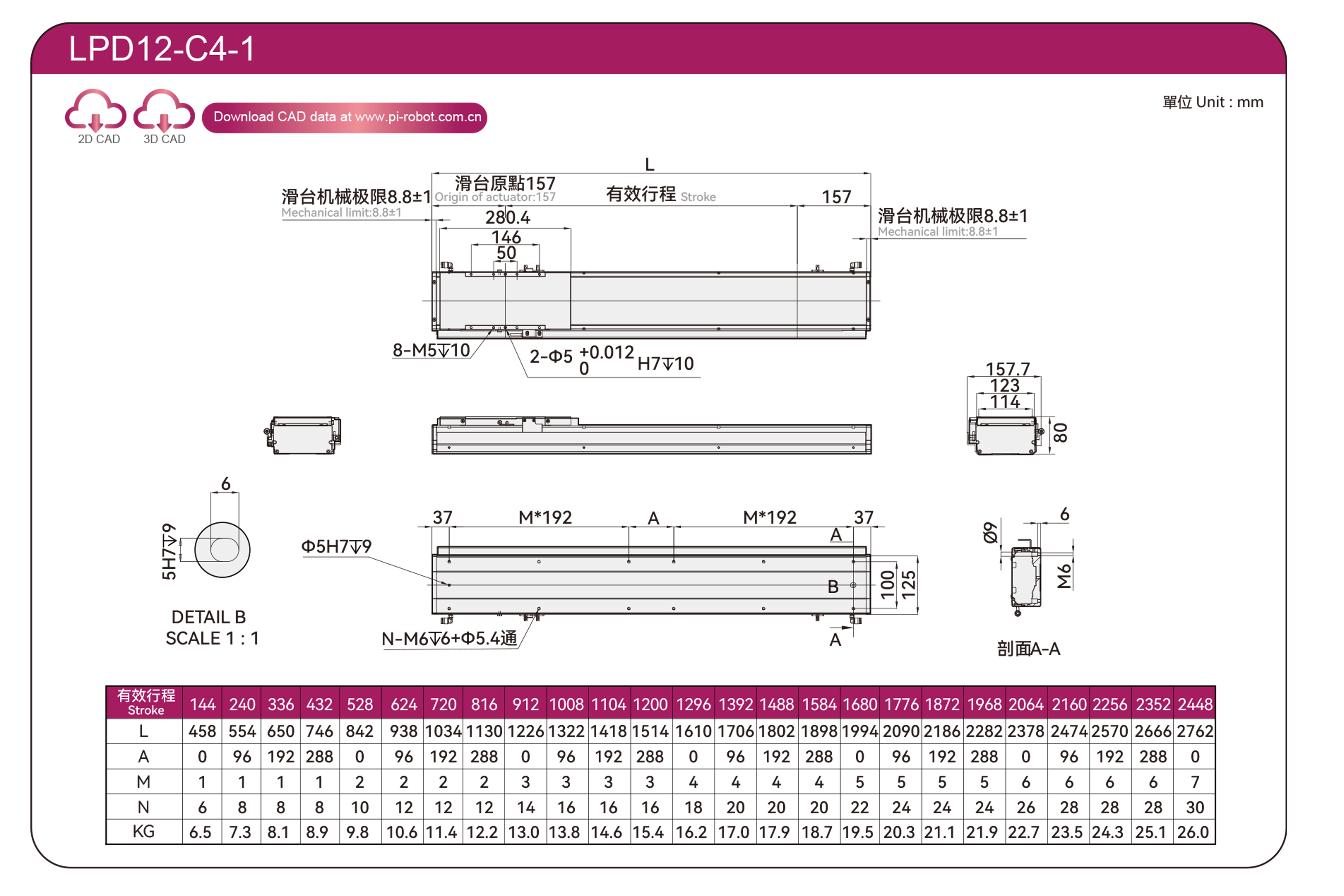 | Tiêu chuẩn | Robot động cơ tuyến tính | LPD12 | P40-C2-S | 125 | 80 | ±0,003 | 80 | 176 | 3.3 | 20 | 2500 |