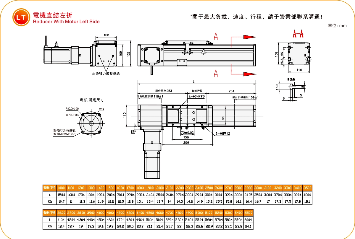 | Sử dụng ở đâu | Chế độ lái | Thông số kỹ thuật mô hình | Cơ chế giảm | Công suất động cơ (w) | Chiều rộng (mm) | Khả năng lặp lại (mm) | Thông số đai | Tải trọng tối đa (kg) | Tốc độ tối đa (mm/s) *1 | ||