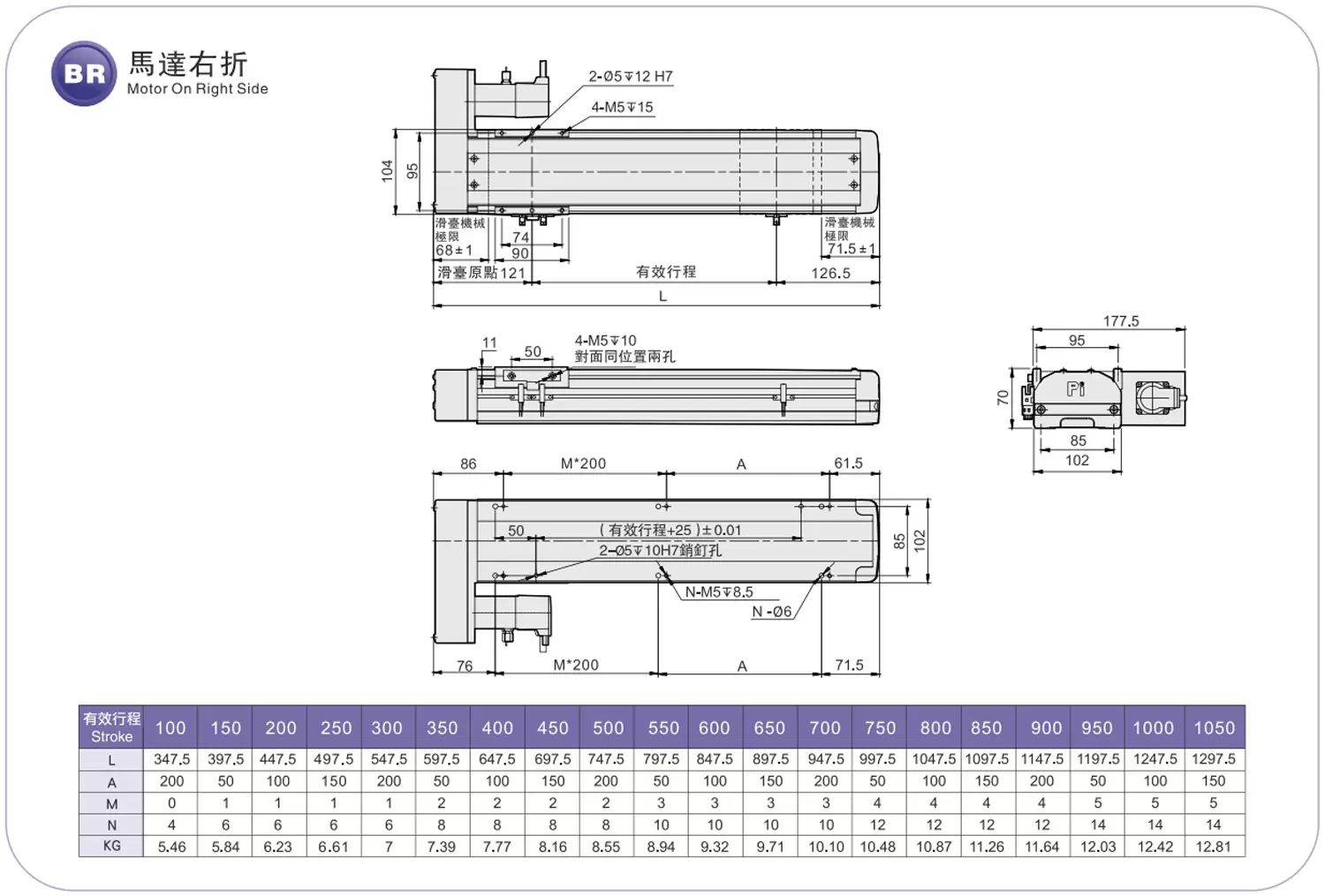 | Môi trường tiêu chuẩn | Vít bi | RMH17S | 400W | 170 | ±0,01 | 16 | 5 | 110 | 33 | 200 |