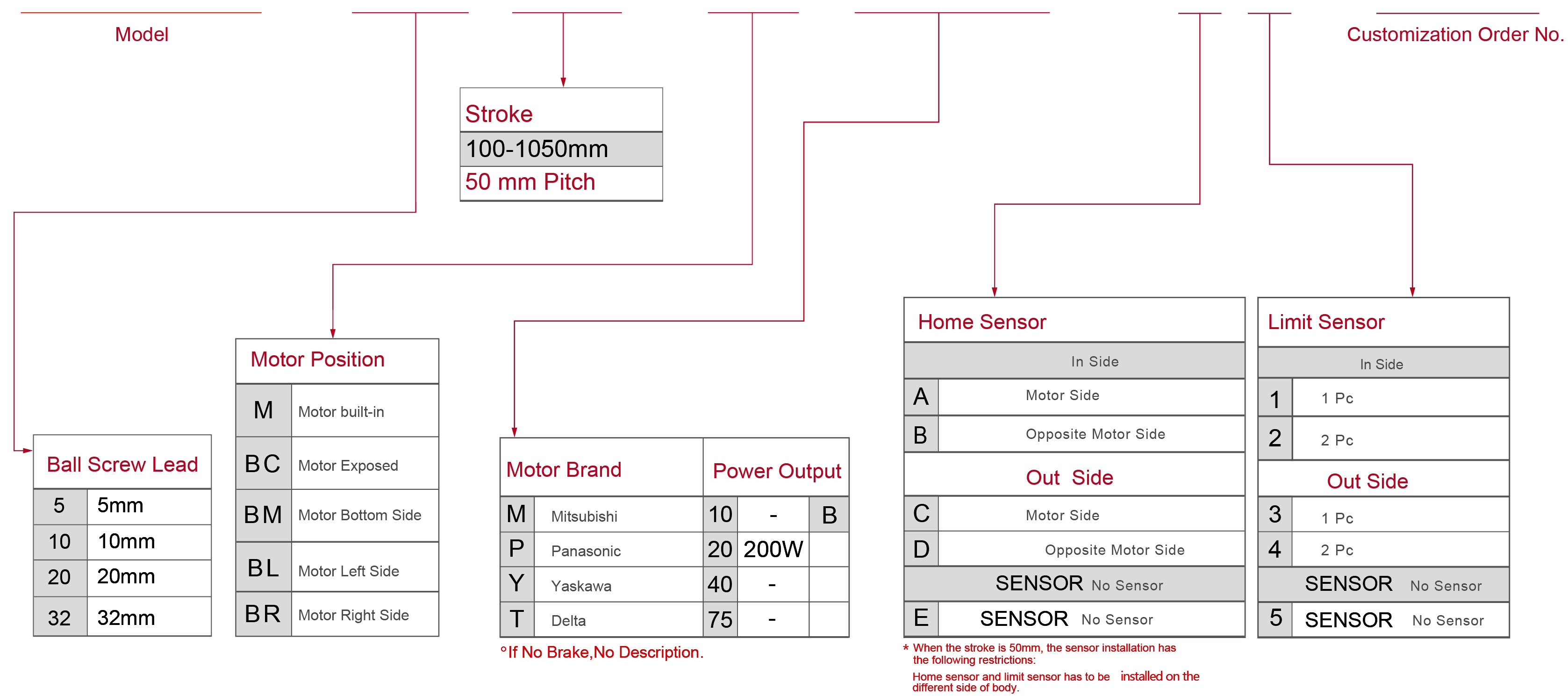 | Sử dụng ở đâu | Chế độ lái | Thông số kỹ thuật mô hình | Công suất động cơ (w) | Chiều rộng (mm) | Khả năng lặp lại (mm) | Thông số kỹ thuật vít bi | Tải trọng tối đa (kg) | Tốc độ tối đa (mm/s) *1 | ||