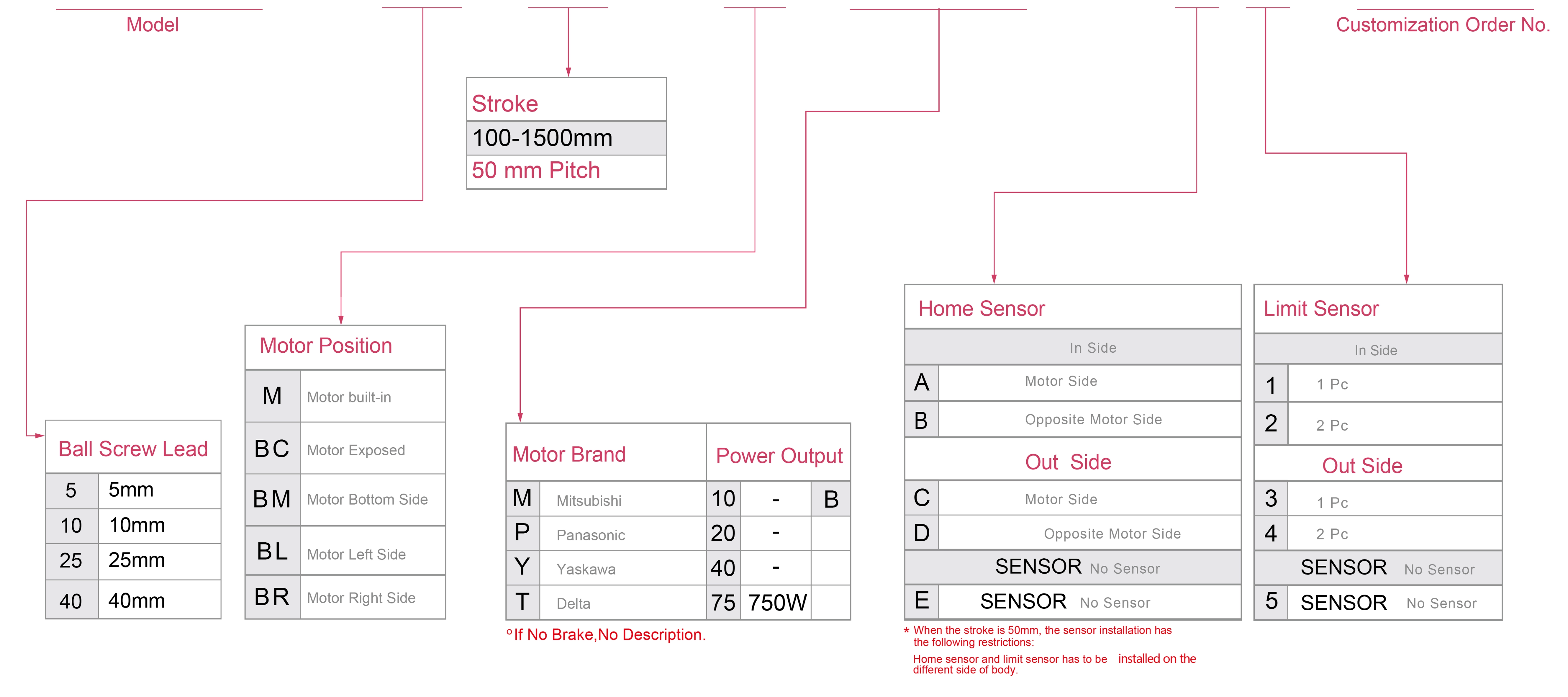 | Sử dụng ở đâu | Chế độ lái | Thông số kỹ thuật mô hình | Công suất động cơ (w) | Chiều rộng (mm) | Khả năng lặp lại (mm) | Thông số kỹ thuật vít bi | Tải trọng tối đa (kg) | Tốc độ tối đa (mm/s) *1 | ||