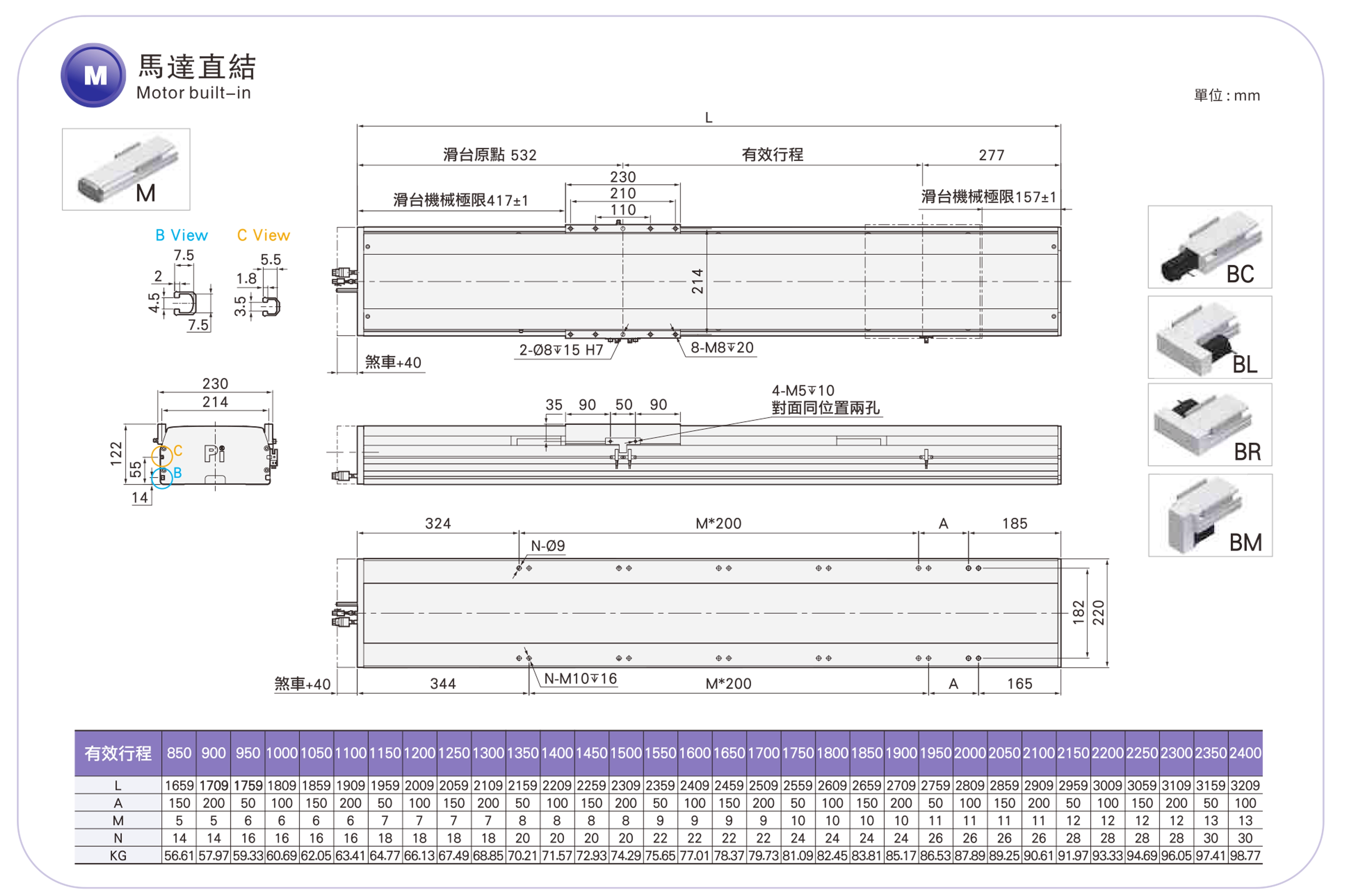 | Sử dụng ở đâu | Chế độ lái | Thông số kỹ thuật mô hình | Công suất động cơ (w) | Chiều rộng (mm) | Khả năng lặp lại (mm) | Thông số kỹ thuật vít bi | Tải trọng tối đa (kg) | Tốc độ tối đa (mm/s) *1 | ||